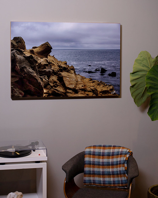 Despite the harsh, coldness felt from the horizon, the warmth of the rocks is a metaphor for the temporary storms of life. We may be weathered, but enduring life’s storms creates who we are.